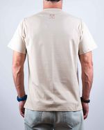 Remera manga corta, calce regular, doble estampa y confección 100% algodón peinado.